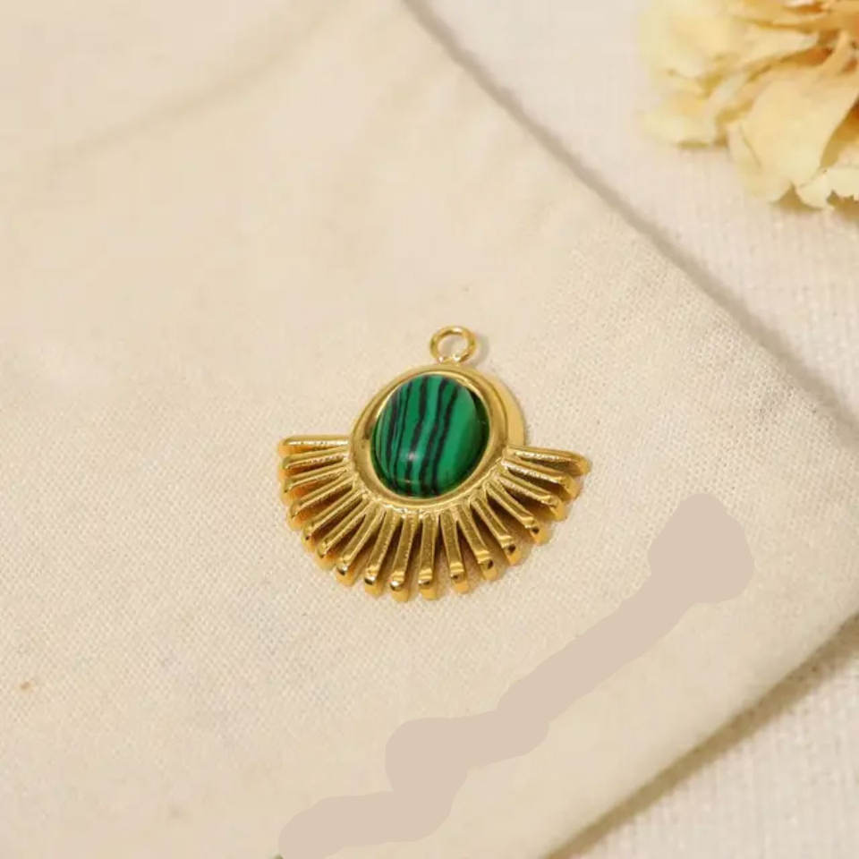 จี้หินมาลาไคท์ทองเหลืองดีไซน์ใหม่ทำด้วยมือชุดง่าม10X15MM รูปไข่เครื่องประดับของขวัญสำหรับเด็กสีทอง