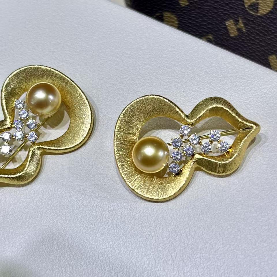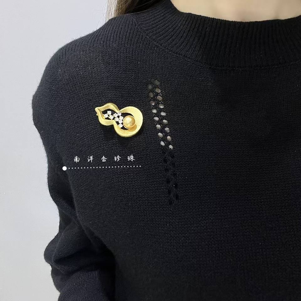 เข็มกลัดทรงน้ำเต้าประดับมุกแท้สีสดใหม่ งานแฮนด์เมด เครื่องประดับแฟชั่นสำหรับติดหน้าอก ดอกไม้ โชคลาภ