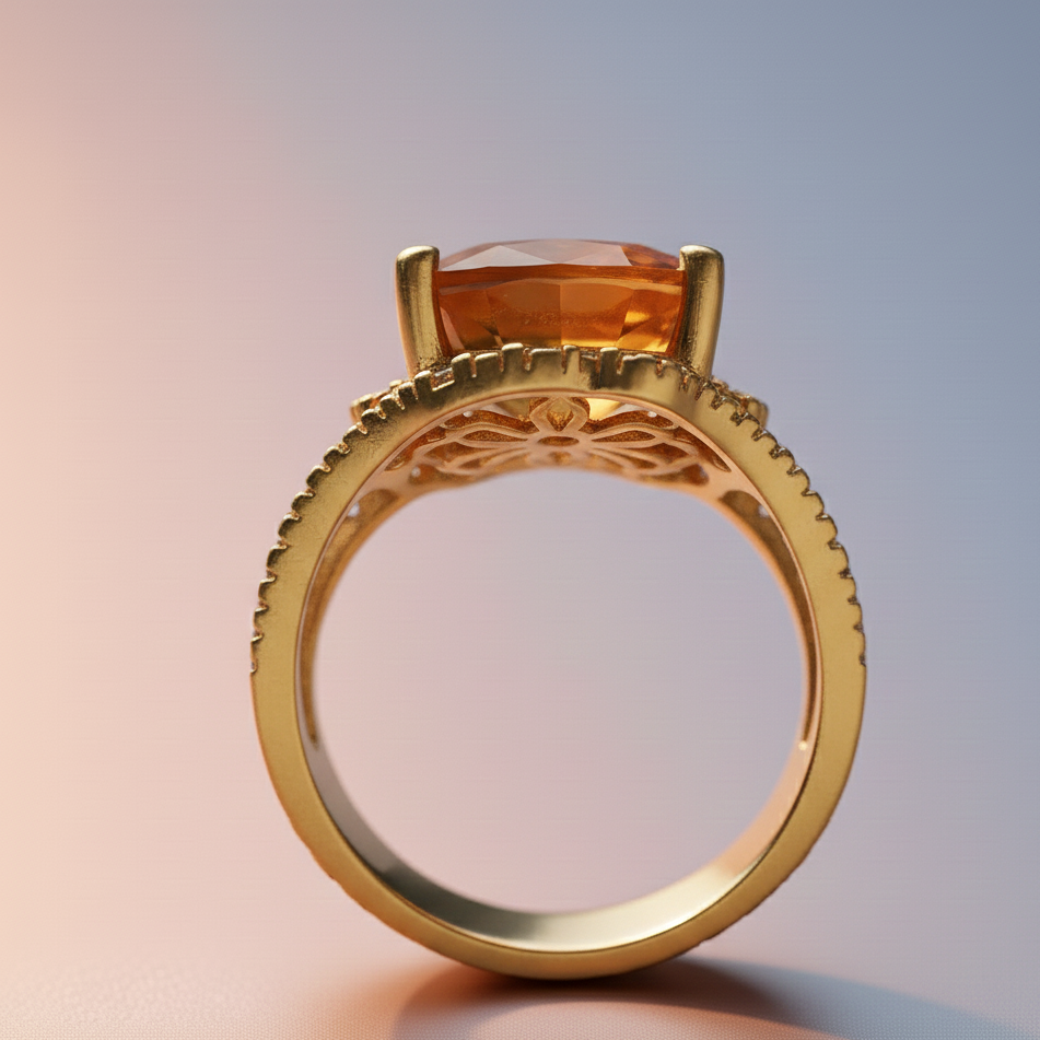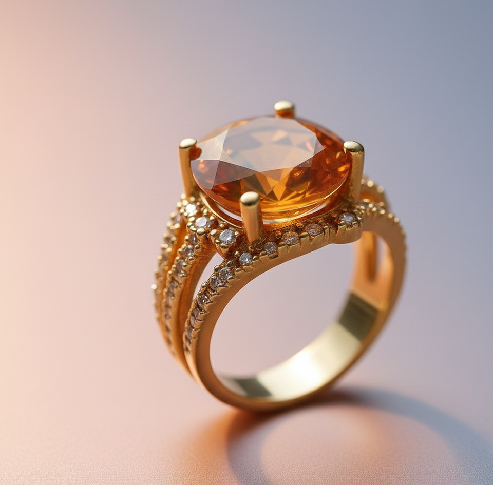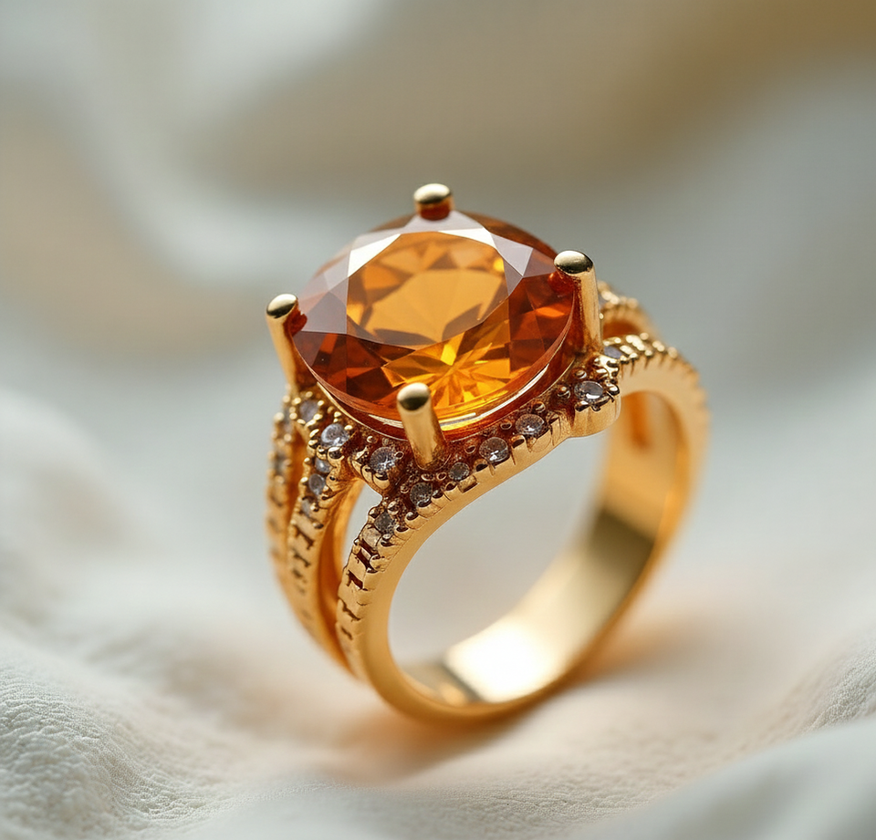 ชื่อสินค้า:แหวน CZ ทรงกลม 10 มม. สีเหลืองไฮโดร