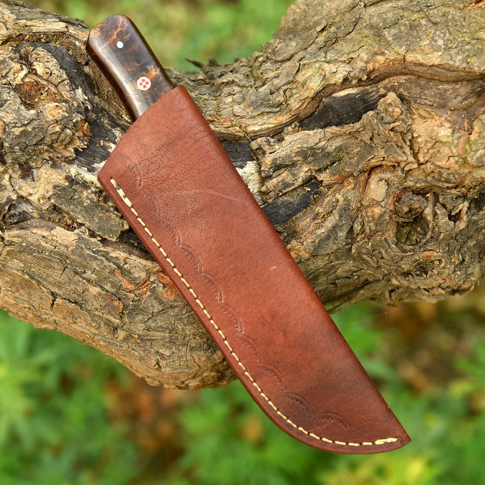 มีดทำมือสไตล์นอร์ดิก เหล็กดามัสกัส พร้อมปลอกมีด ขนาด 8 นิ้ว ด้ามเรซิ่นไม้พะยูง แบบวิกิ้ง สำหรับล่าสัตว์ ทรงรีเวิร์ส แทนโต ODM