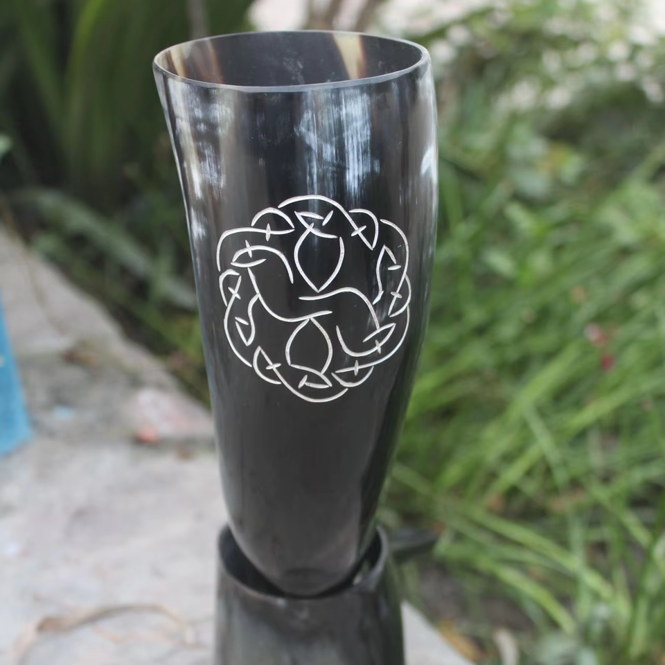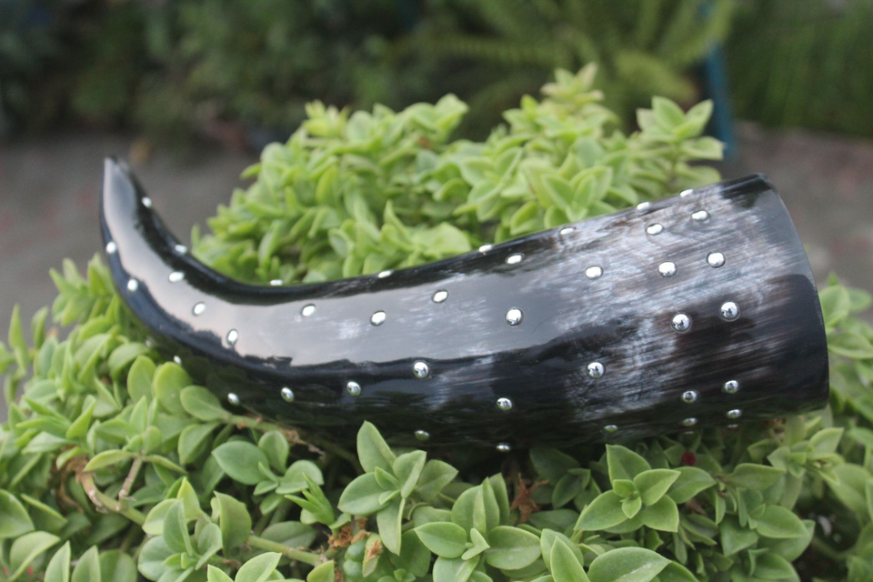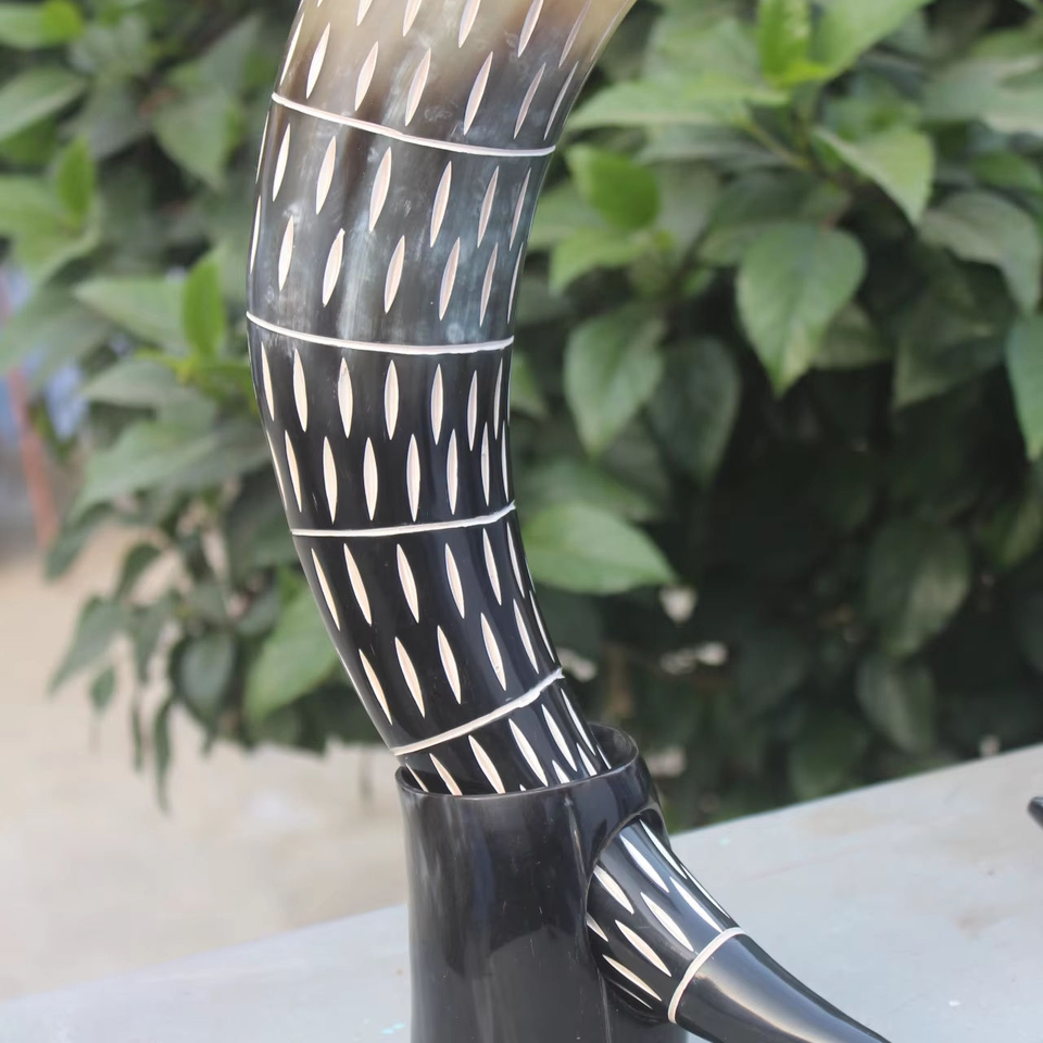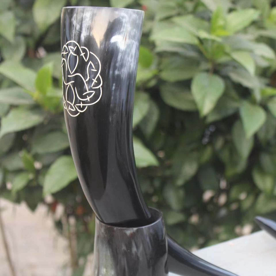แก้วน้ำเขาสัตว์ทำมือ กันน้ำ ลายสไตล์นอร์ส ขอบโลหะ สีธรรมชาติ สำหรับคนรักเครื่องดื่ม ของขวัญทางธุรกิจ