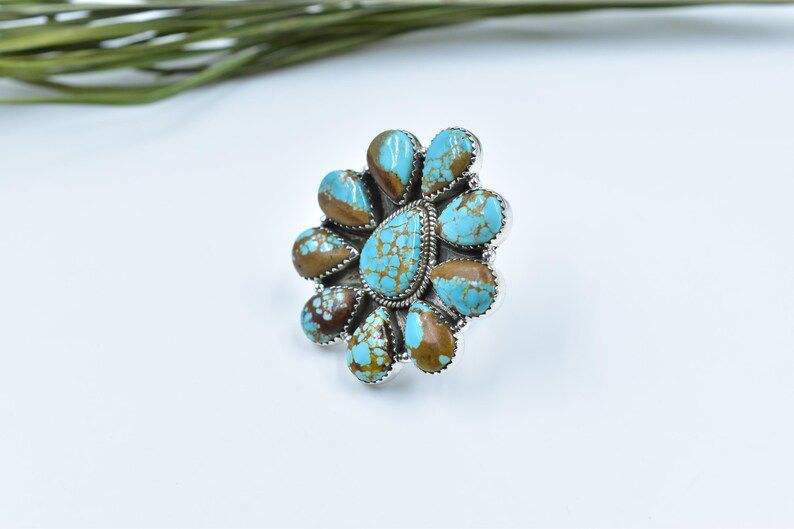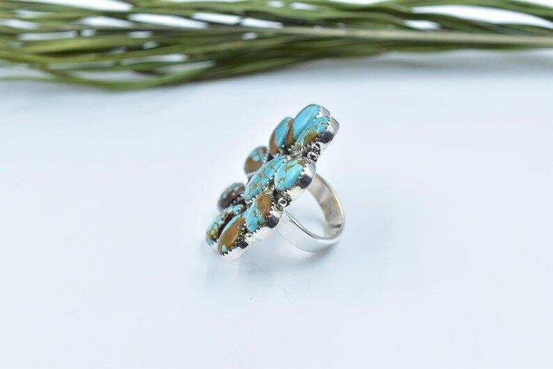 แหวนพลอยเทอร์ควอยซ์ปรับได้หมายเลข8ทำด้วยมือเครื่องประดับช่างฝีมือเงินแท้สไตล์ตะวันตกเฉียงใต้