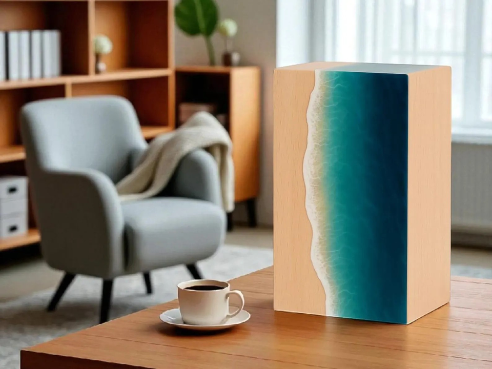 โกศแกะสลักทำจากไม้เป็นรูปคลื่นของมหาสมุทรทำด้วยมือทำจากเรซินรูปกันเป็นที่ระลึกสำหรับตกแต่งเถ้ากระดูกดีไซน์ทันสมัย