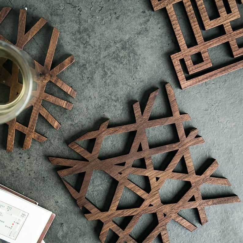 ที่รองหม้อไม้ชีแชมทรงแปดเหลี่ยมทำมือ - ที่รองจานไม้แกะสลักลายดอกไม้สำหรับห้องครัวและห้องรับประทานอาหาร - ที่รองหม้อทนความร้อน