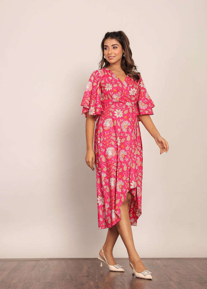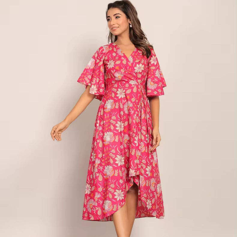 ชุดเดรสยาวลายการ์ตูนสำหรับผู้หญิงชุดเดรสยาว MIDI 2025สีชมพูและสีขาวทำด้วยมือ