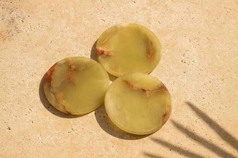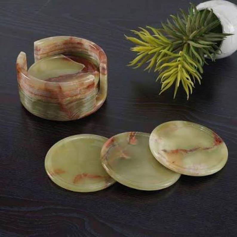 ชุดจานรองแก้วหินอ่อนออนิกซ์ทำมือ พร้อมที่วาง ชุด 6 ชิ้น ของตกแต่งโต๊ะสุดหรู