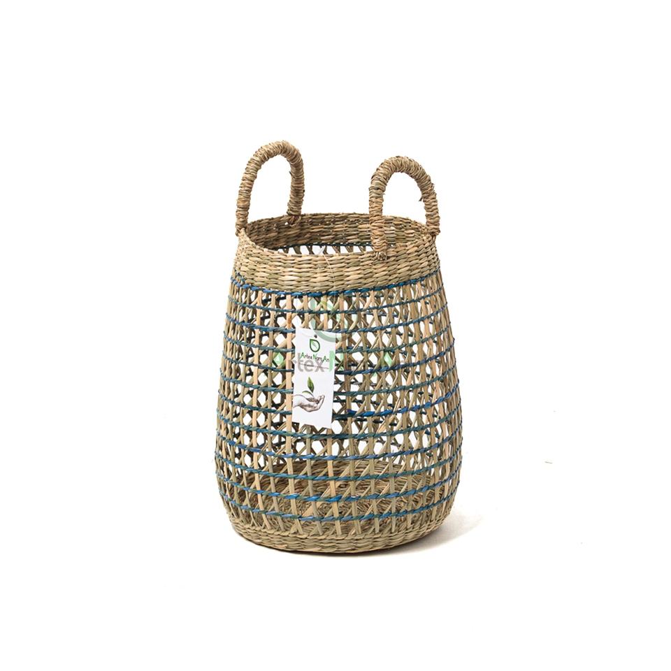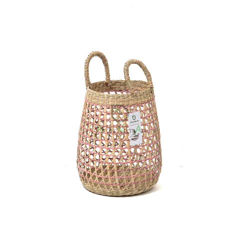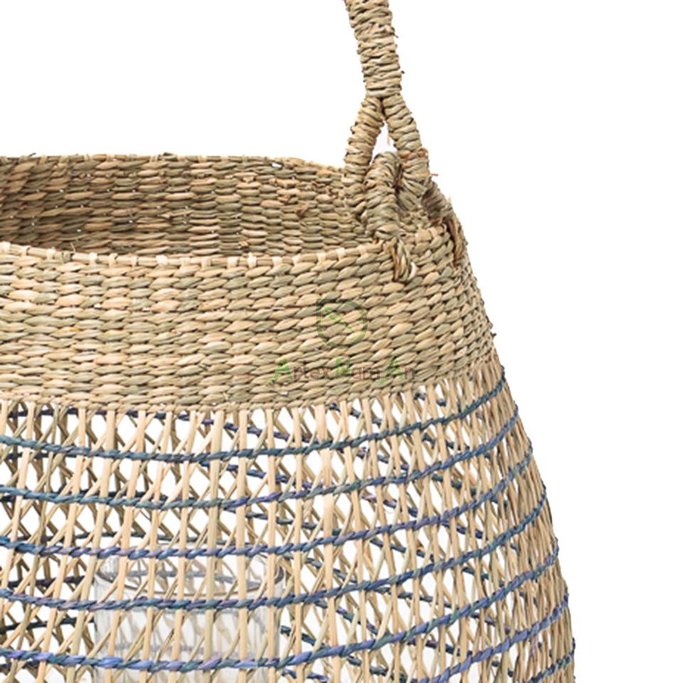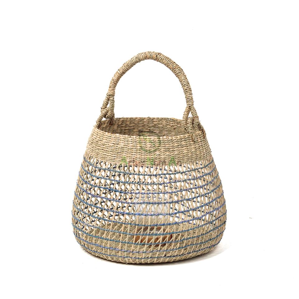 โคมไฟเทียนทอจากหญ้าทะเลสานแบบสานสไตล์วินเทจที่วางถ้วยแก้วสำหรับตกแต่งบ้านพร้อมกล่องเทียนโลหะทำด้วยมือ