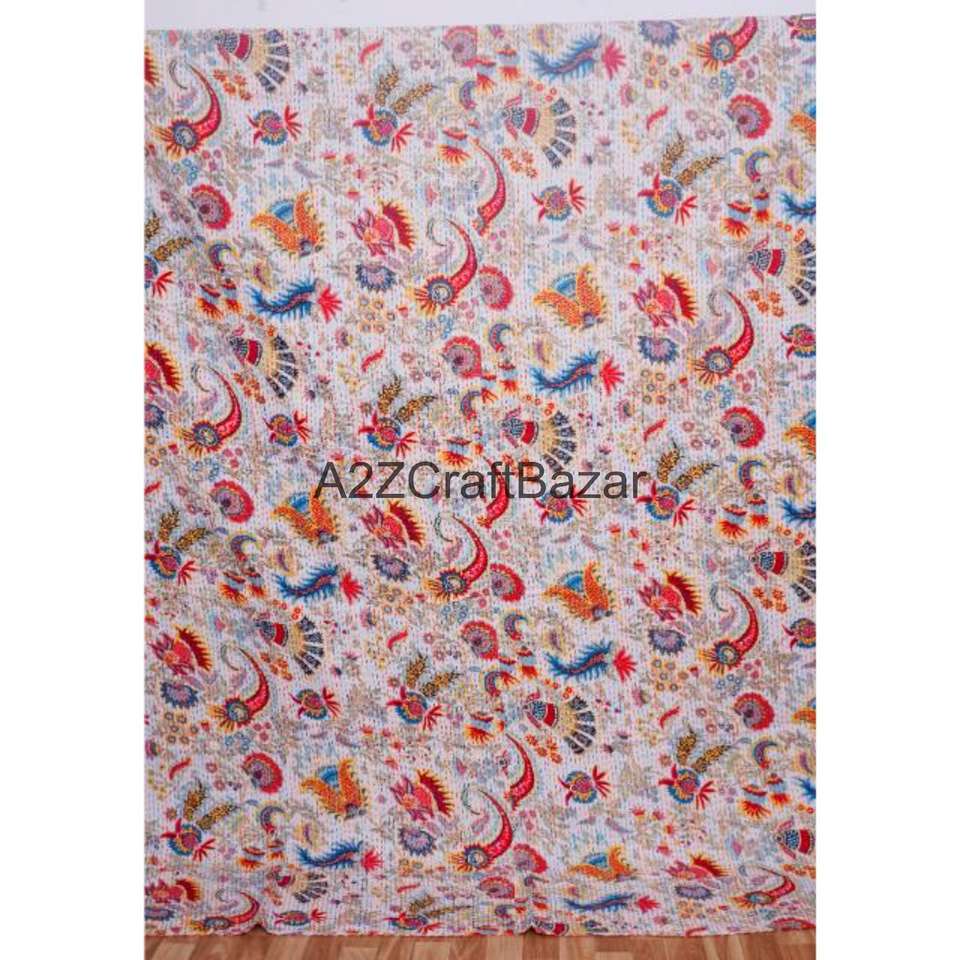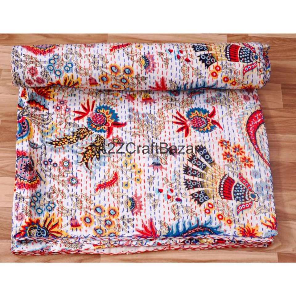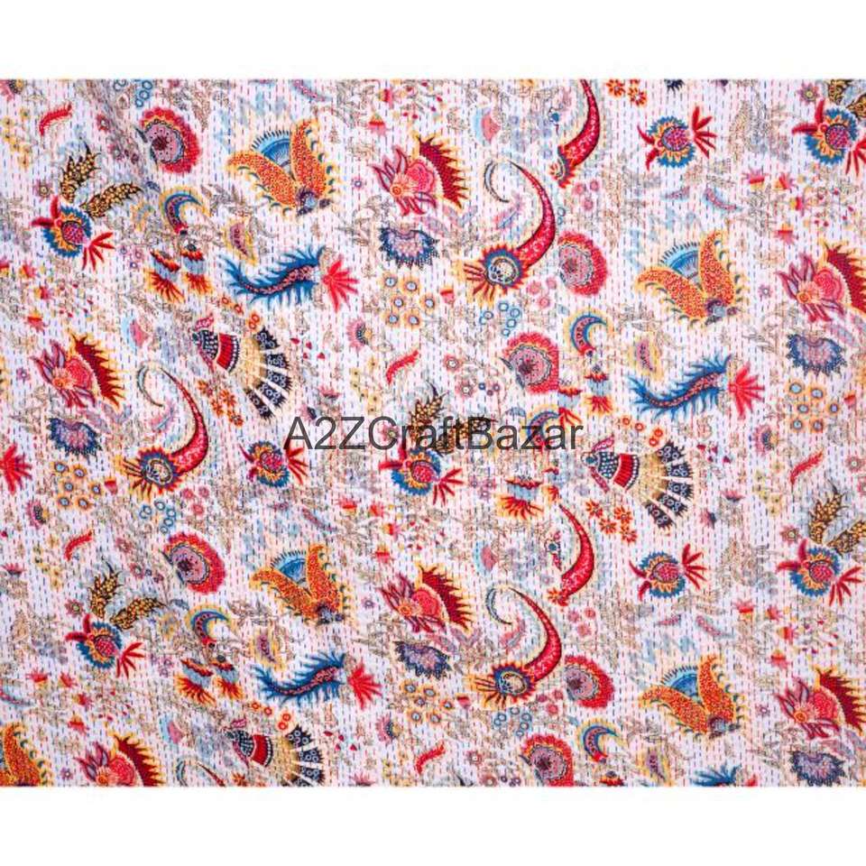 ผ้าห่มกันธาทำมือจากผ้าฝ้ายออร์แกนิค ไส้ใยฝ้าย 100% ลายหลากสี เย็บมือ เป็นมิตรกับสิ่งแวดล้อม สไตล์โบฮีเมียน สำหรับใช้ในบ้าน
