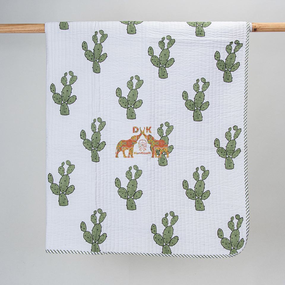 ผ้าห่มคอตตอนออร์แกนิกทำด้วยมือสำหรับบ้านหรือโรงแรมผ้าห่มเด็กสำหรับฤดูหนาวพิมพ์ลายกระบองเพชรตามสั่ง