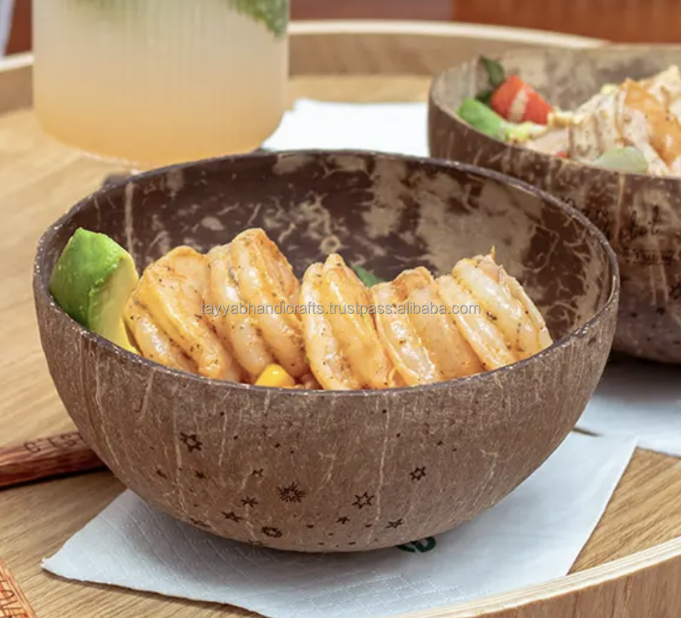 Handmade Organic Wooden Coconut Bowl Shell With Stand and Wooden spoon made by Tayyab Handicraft