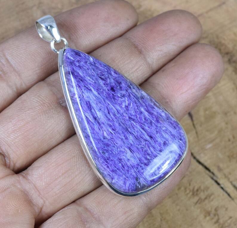 จี้หินชาโรอิทประดับด้วยหินชาโรอิทที่เปล่งประกาย