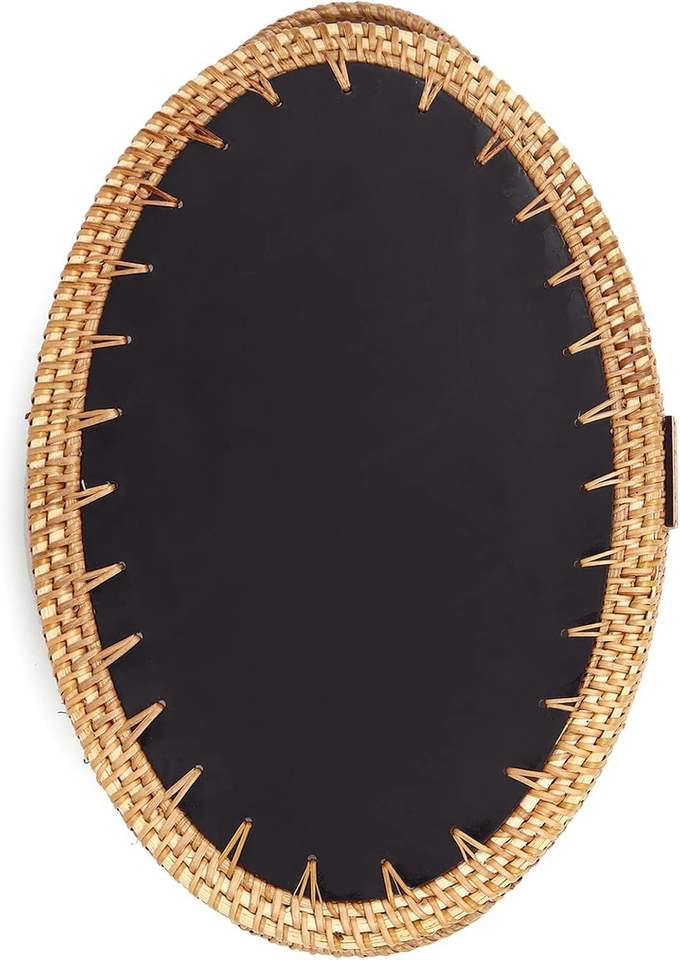 ถาดเก็บขนมปังผลไม้ทรงรีทำด้วยมือของตกแต่งตะกร้าหวายสานถาดหวายประดับมุกฝังสำหรับงานฝีมือระดับ HF