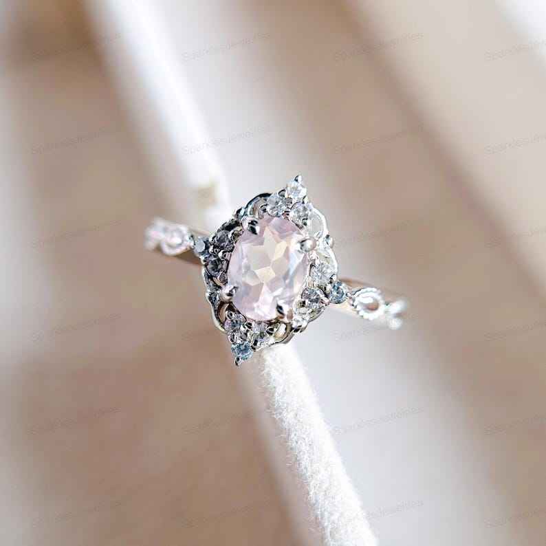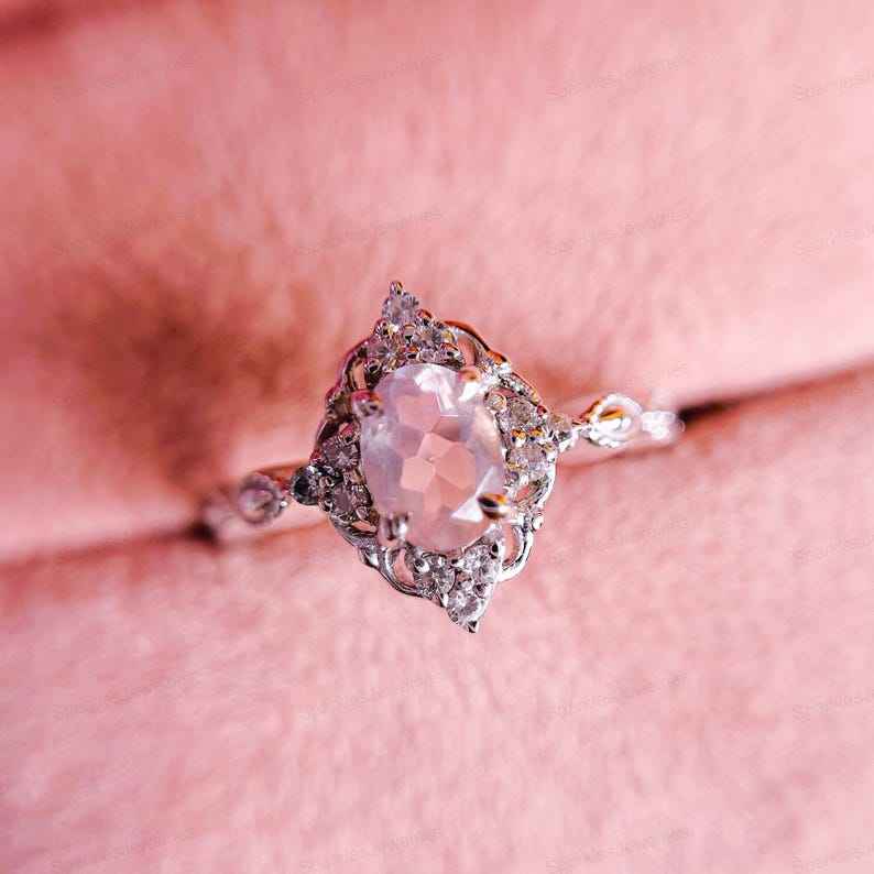 925ปะการังธรรมชาติวงรีทำด้วยมือรักษาด้วยความร้อนอัญมณีเงินแท้ครบรอบแหวนหมั้น