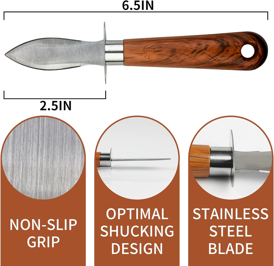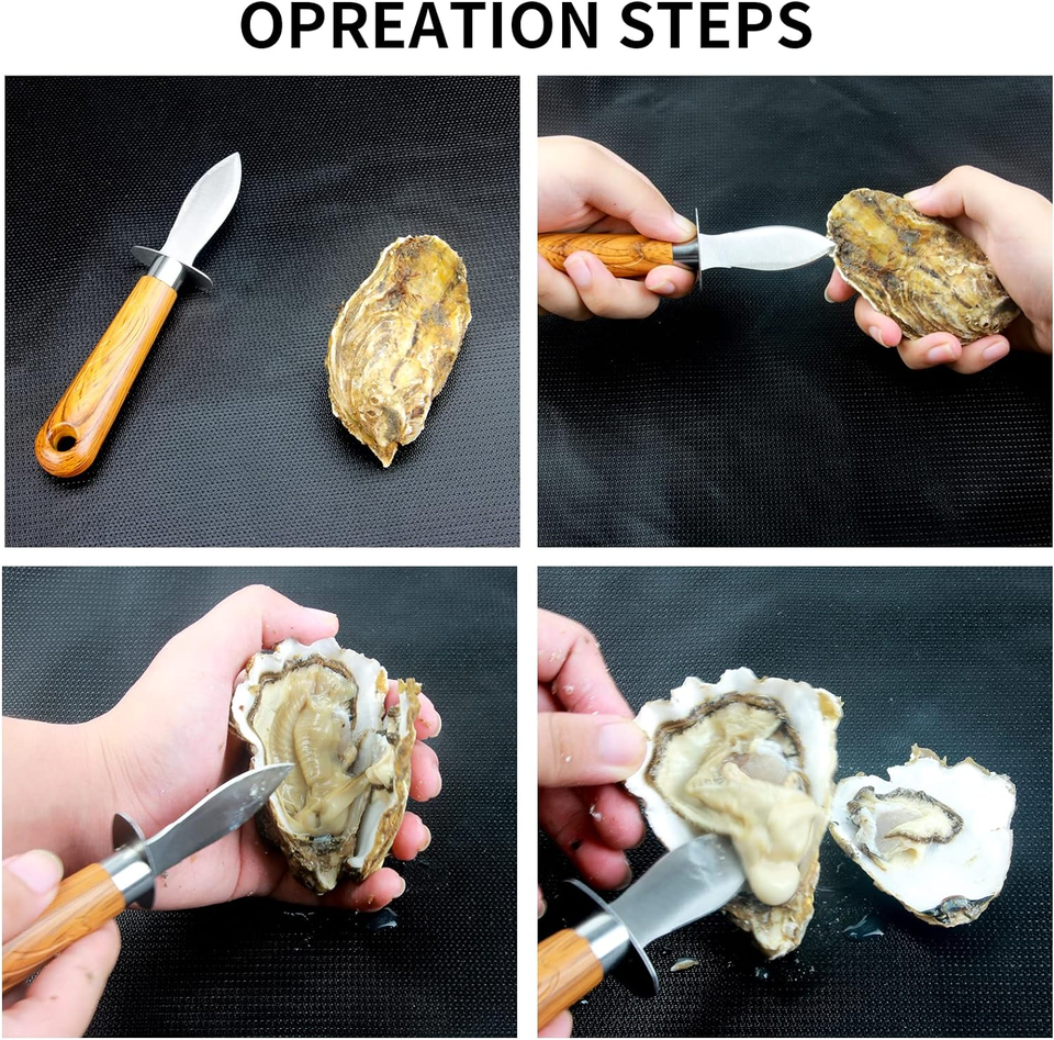 Handmade Oyster Shucking Knife Damascus Steel Seafood Opener Oyster Shucker Clam Knife with Wooden Handle