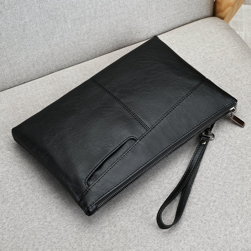 กระเป๋าถือหนัง PU ทำมือสำหรับผู้ชาย กระเป๋าถือขนาดใหญ่ กระเป๋าคลัทช์สำหรับออกงานกลางคืน กระเป๋าสตางค์แบบคล้องข้อมือสุดหรู สีดำ