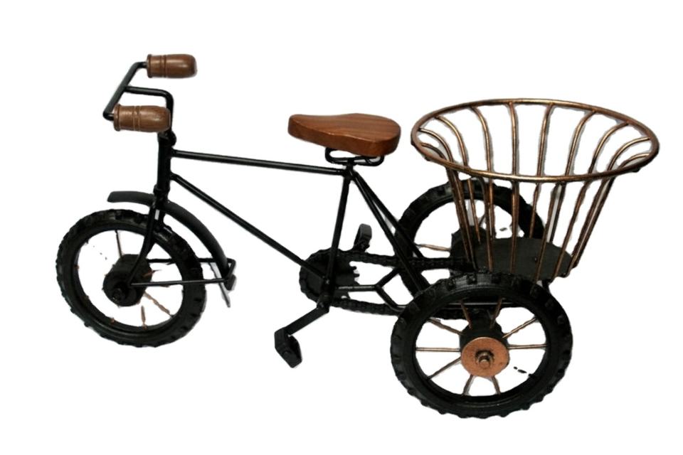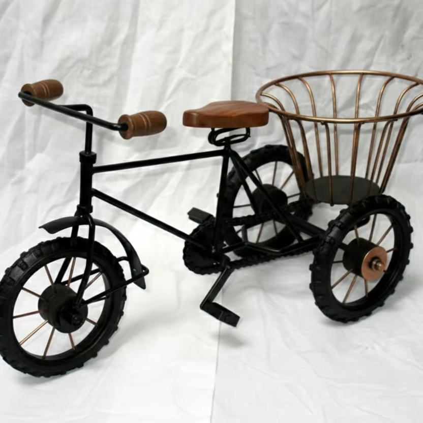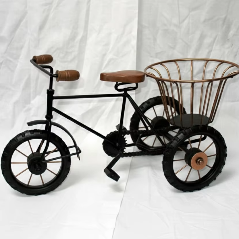 ตะกร้าเหล็กวาดลายด้วยมือรูปสามล้อโบราณ ของตกแต่งจิ๋ว กระถางต้นไม้ ที่จัดระเบียบบนโต๊ะทำงาน ของตกแต่งบ้านและสำนักงานช่วงคริสต์มาส