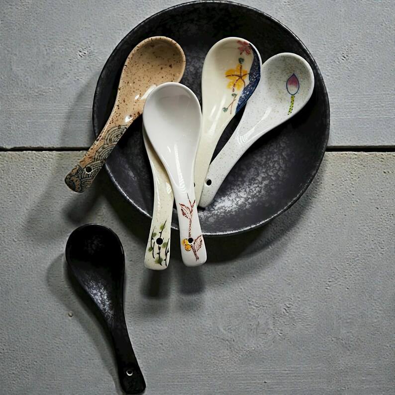 ช้อนเซรามิกสไตล์วาบิซาบิ ทำมือและทาสี สำหรับโรงแรม ร้านอาหาร ช้อนพุดดิ้ง ช้อนทานอาหาร ช้อนด้ามยาว ช้อนก๋วยเตี๋ยวหลามี่ ช้อนซุป