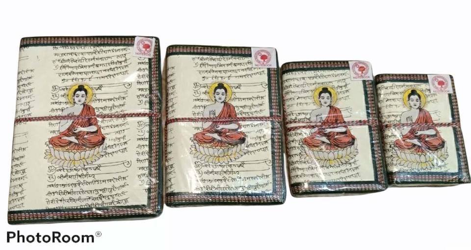 สมุดโน้ตทำมือ RAWAT HANDICRAFTS พร้อมกลิตเตอร์และกระจก สมุดบันทึกพิมพ์ลายสไตล์โบโฮวินเทจสำหรับนักเรียน