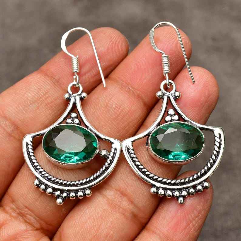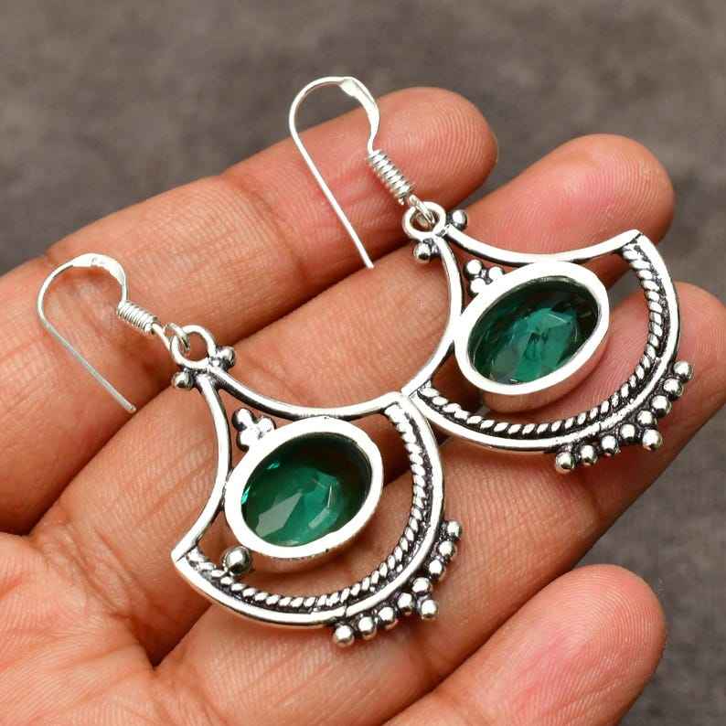 ทำด้วยมือน่ารักพาราอิบาทัวร์มาลีนต่างหูเงินแท้เครื่องประดับพลอยสีเขียวสีฟ้าธรรมชาติของขวัญวันครบรอบสำหรับผู้หญิง