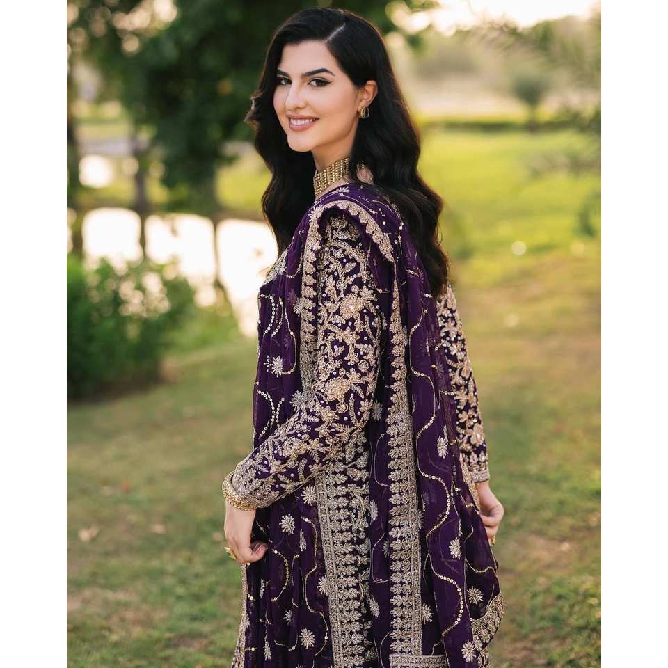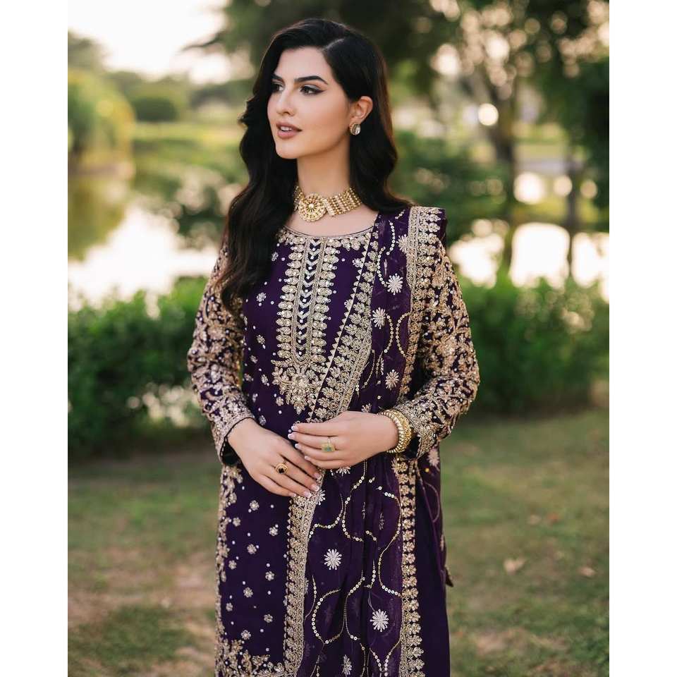 ชุดงานปาร์ตี้แฮนด์เมดทรงเอไลน์ เสื้อ-กางเกงพลัสโซ่ และผ้าคลุมไหล่ ไซส์ XL พร้อมงานปักหนัก ดีไซน์หรูหรา