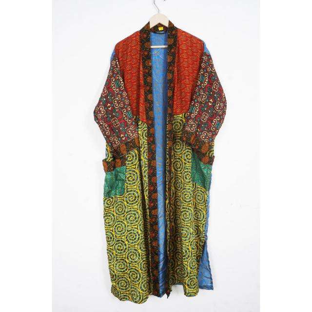 ชุดคลุมยาวผ้าไหมแท้ 100% งานแฮนด์เมด ตกแต่งลายปะติด คอวี ปิดด้วยเชือกผูก แขนสามส่วน ระบายอากาศได้ดี เนื้อผ้านุ่ม สำหรับผู้หญิง