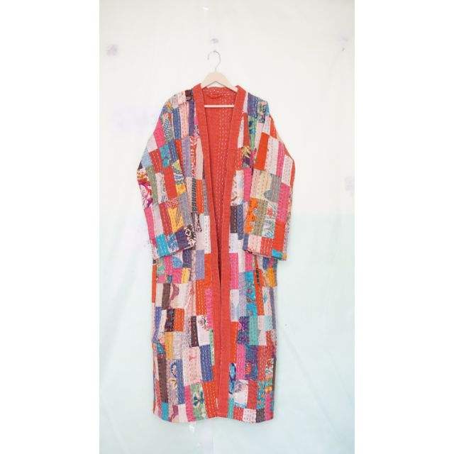 แจ็กเก็ตผ้าฝ้าย Kantha เสื้อคลุมกิโมโน,เสื้อคลุมอาบน้ำลายดอกไม้เสื้อคลุมเพื่อนเจ้าสาวชุดชายหาดชุดเดรสคนท้อง