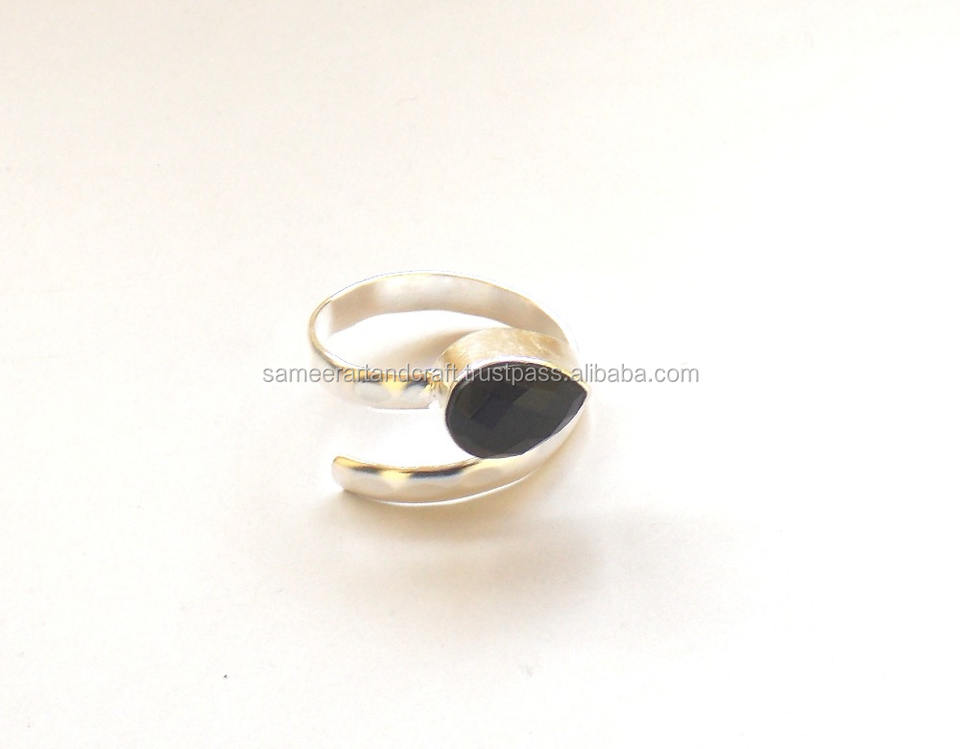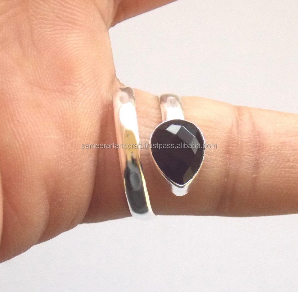 แหวนเพชรรูปลูกแพร์ทำด้วยมือแหวนเงินสวยสีดำพลอยโอนิกซ์ปรับได้ของขวัญแต่งงานแฟนซีสำหรับปาร์ตี้