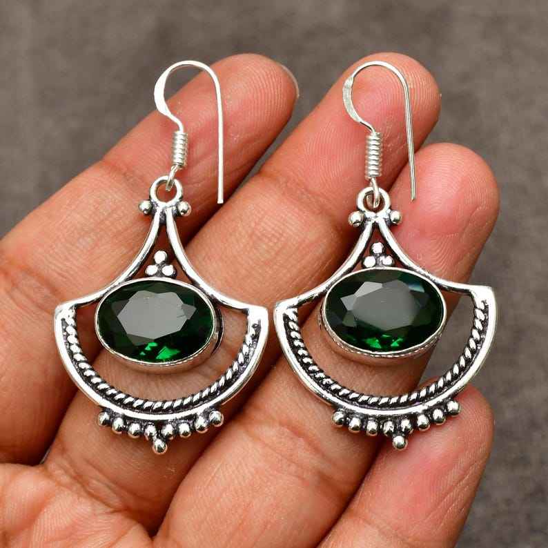 ต่างหูเพอริดอททำมือ เงินแท้ 925 เครื่องประดับพลอย ต่างหูห้อย น้ำหนักเบา ของขวัญสำหรับผู้หญิงและเด็กผู้หญิง