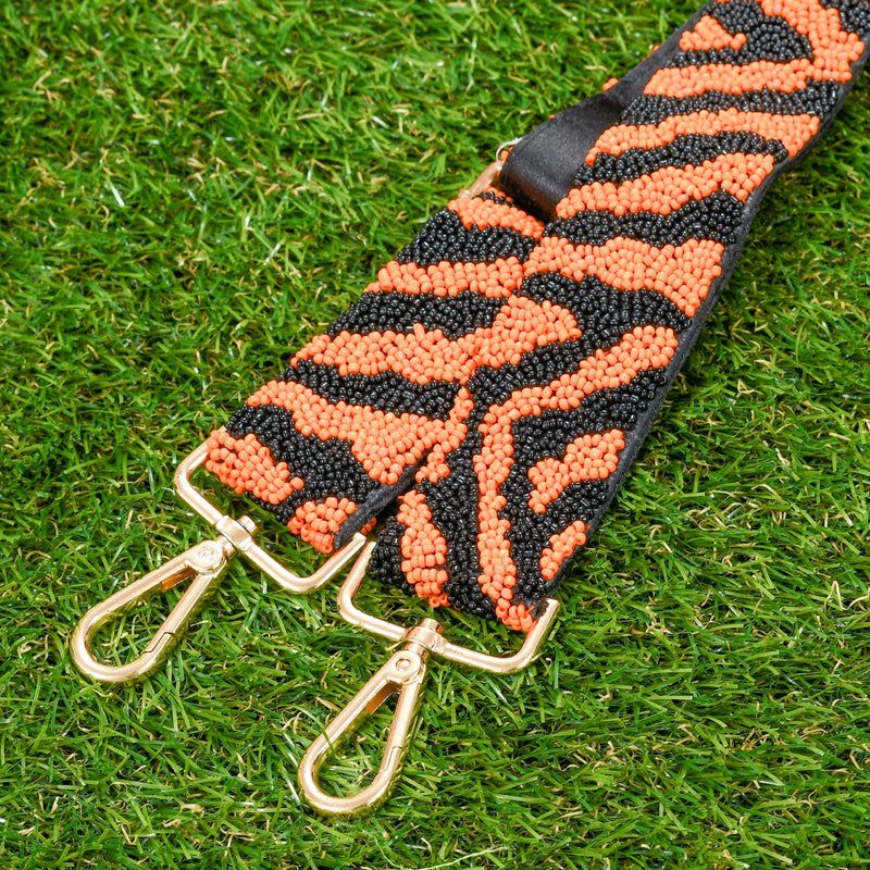 สายรัดข้อมือลูกปัดทำมือแบบปรับแต่งได้สำหรับเสื้อผ้าทีมเสือ สีส้มขาว ลูกปัดสำหรับวันแข่งขัน ลายอุ้งเท้าเสือ ปรับแต่งได้