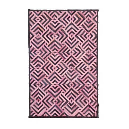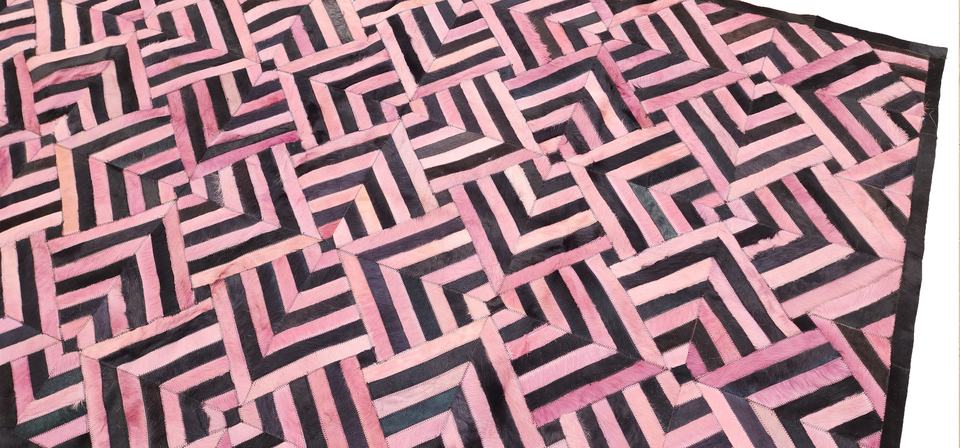 พรมหนังวัวเย็บต่อกันสีชมพูและสีดำ งานแฮนด์เมด สไตล์โมเดิร์น สำหรับตกแต่งบ้านและสำนักงาน