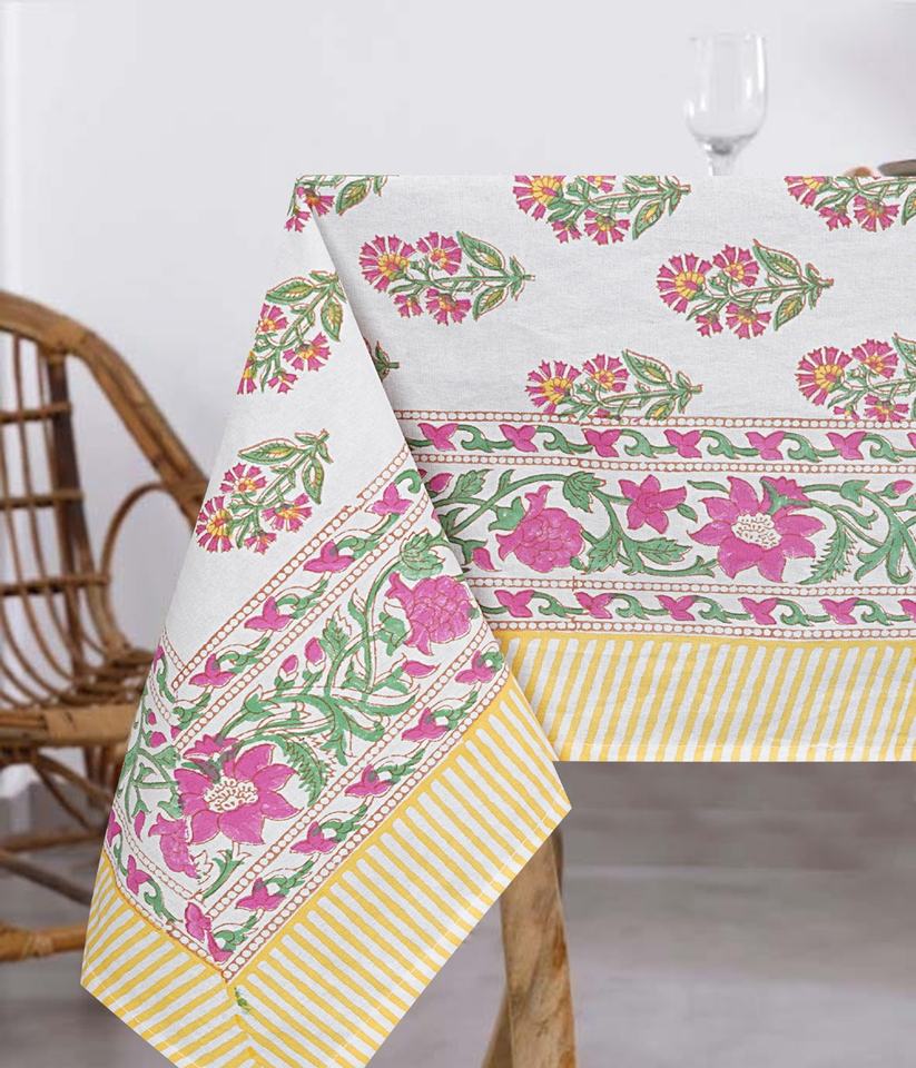 ผ้าคลุมโต๊ะรับประทานอาหารพื้นเมืองอินเดียพิมพ์ลายดอกไม้สีชมพูทำด้วยมือผ้าปูโต๊ะงานแต่งงานสำหรับ