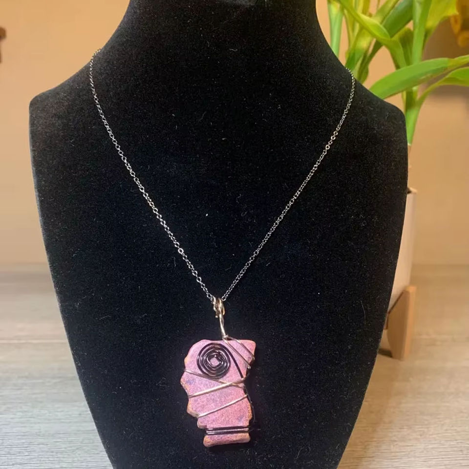 สร้อยคอหินสีชมพูทำมือ ประดับด้วยลวดสีโรสโกลด์ ดีไซน์เกลียววนแบบไม่ซ้ำใคร เครื่องประดับจี้ห้อยสไตล์โบโฮ งานศิลปะสำหรับงานแต่งงาน