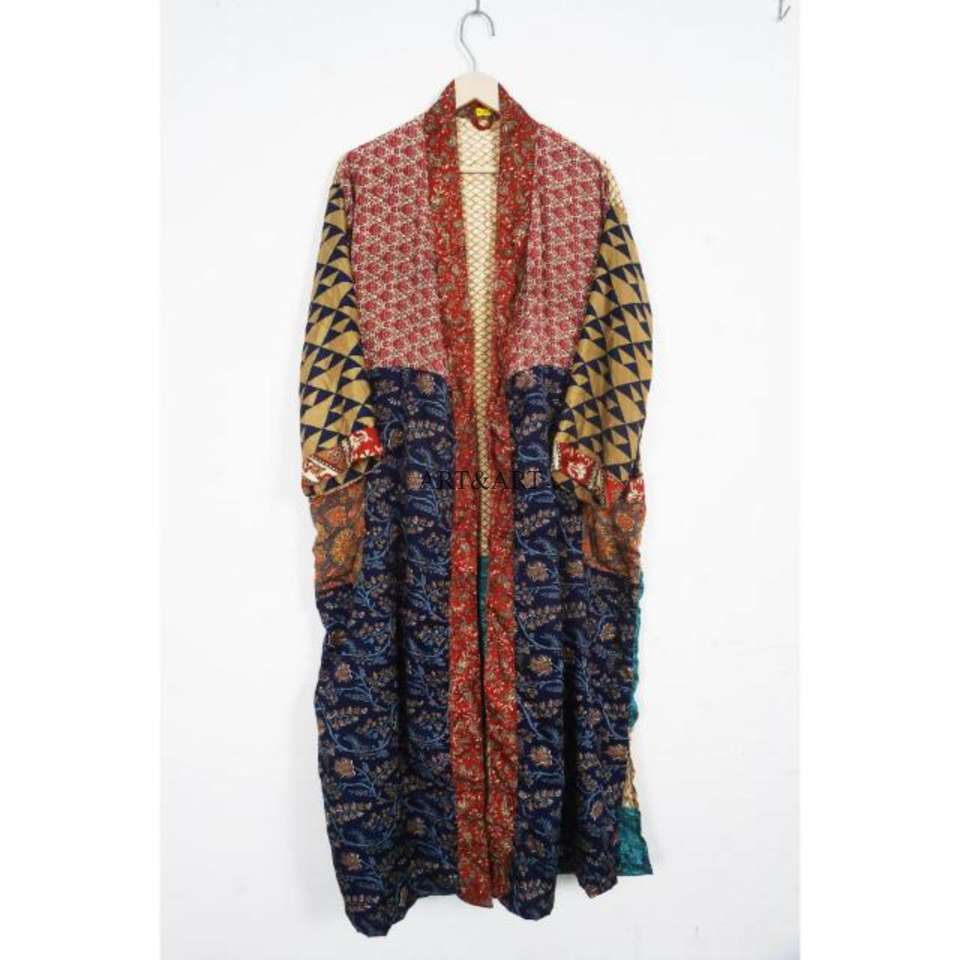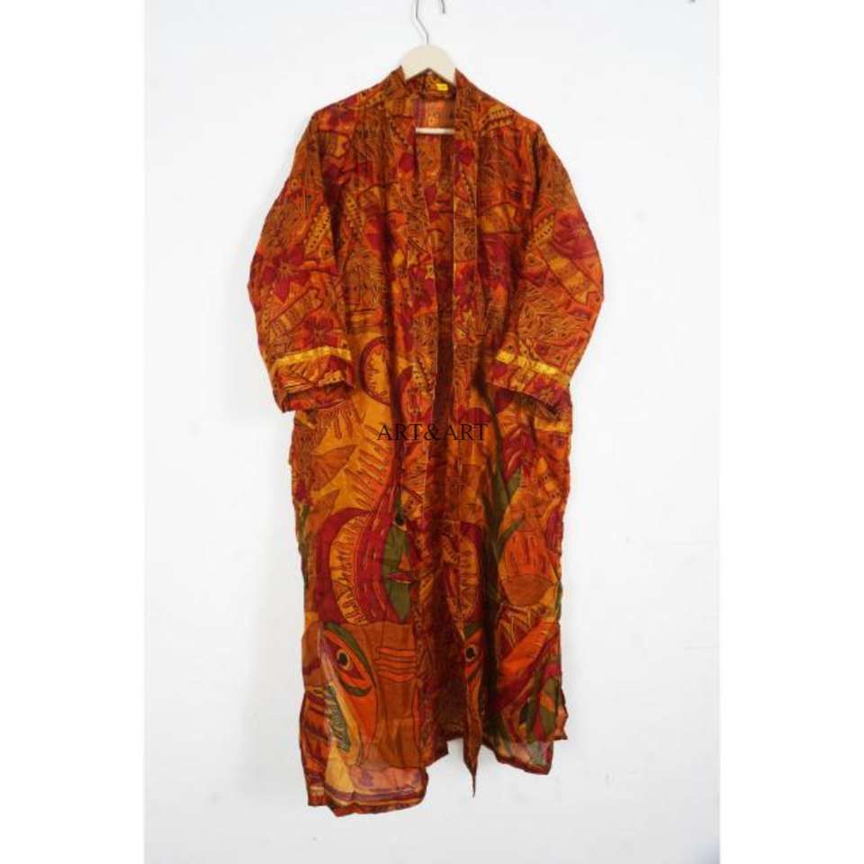ชุดกิโมโนผ้าไหมทำมือ ลายสก็อต ระบายอากาศได้ดี สำหรับผู้หญิง คอวี แขนสามส่วน ปิดด้วยเชือกผูก ยาวเต็มตัว
