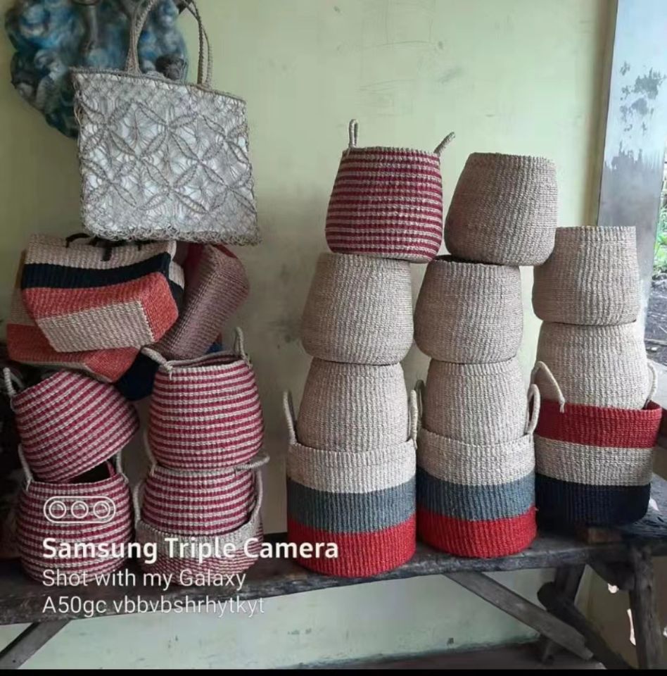 ตะกร้าเก็บของทำมือจากเส้นใยพืชอะบาคา ตะกร้าออร์แกนิกสั่งทำพิเศษ ตะกร้าสานด้วยมือจากวัสดุธรรมชาติ หญ้าและอะบาคา