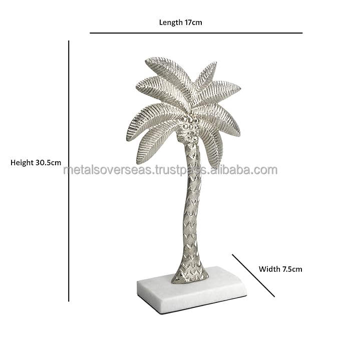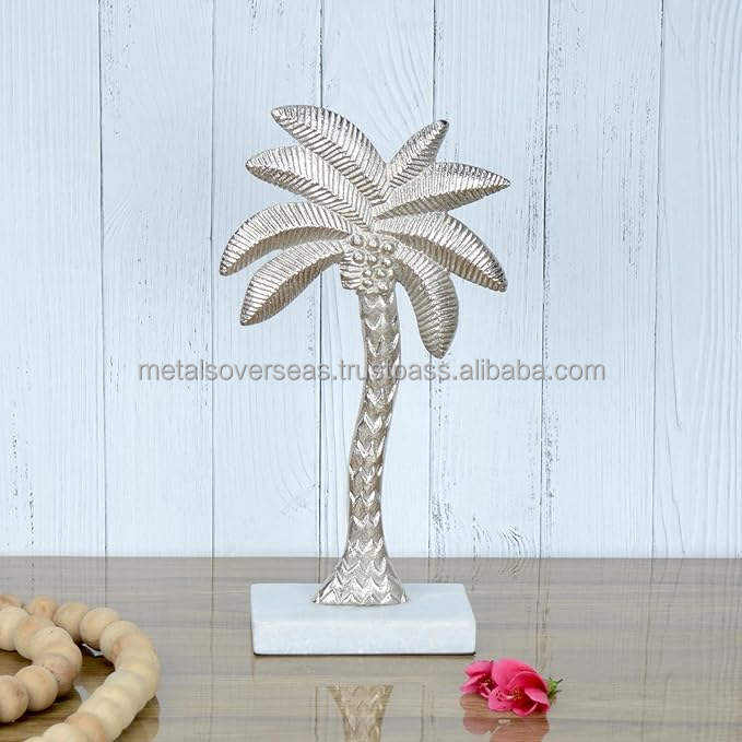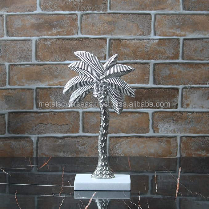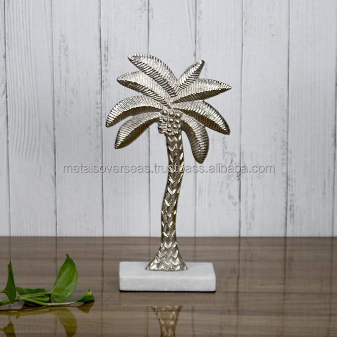 รูปปั้นต้นปาล์มมะพร้าวทำมือจากอะลูมิเนียมชุบเคลือบ พร้อมฐานหินอ่อน สำหรับตกแต่งบ้าน โรงแรม สำนักงาน และโต๊ะอาหาร