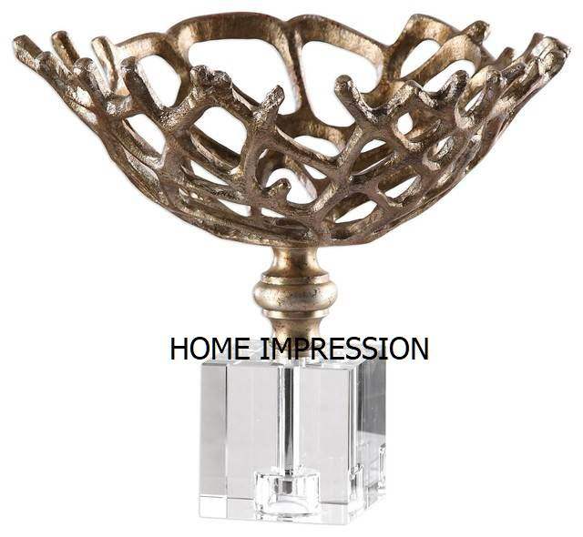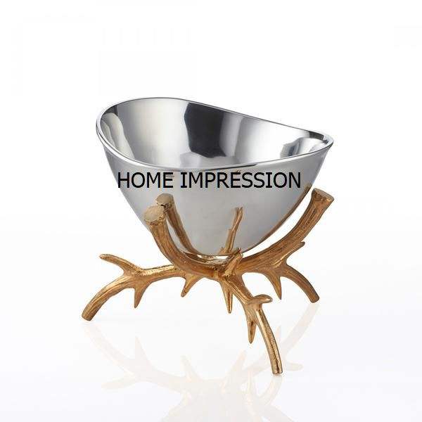 ชามอะลูมิเนียมขัดเงาทำมือ รักษ์โลก สไตล์มินิมอล งานศิลปะสมัยใหม่ ตกแต่งด้วยใบไม้ กิ่งไม้ สีทองหรูหรา สไตล์อินเดีย
