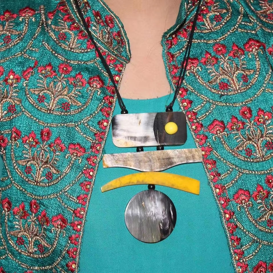 สร้อยคอแฟชั่นทำมือรูปเขาควายและเรซินขัดเงาสร้อยคอสไตล์สัตว์จากอินเดียขายส่งจำนวนมาก