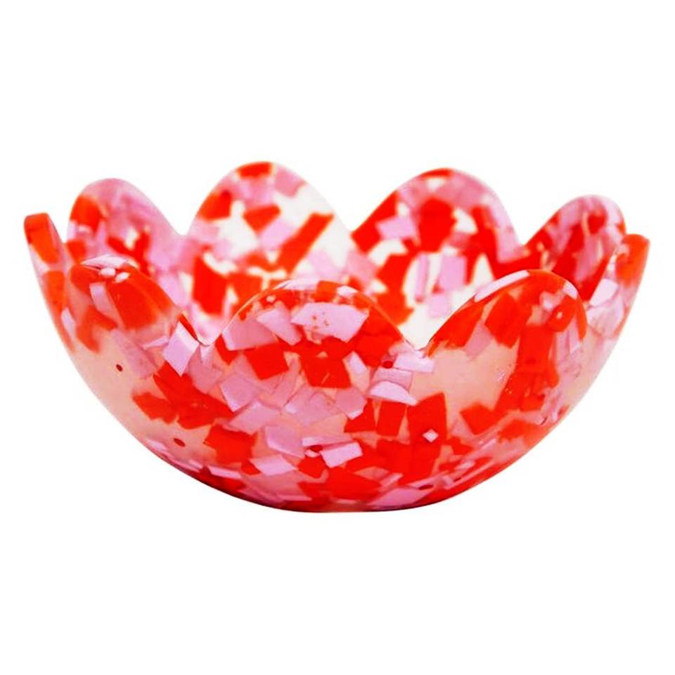 ชามและจานเสิร์ฟเรซิ่นตกแต่งสไตล์ศิลปะสมัยใหม่ ผลิตด้วยมือ ขัดเงา เป็นมิตรกับสิ่งแวดล้อม ใช้กับเครื่องล้างจานได้ ผลิตในอินเดีย เหมาะสำหรับงานเลี้ยง