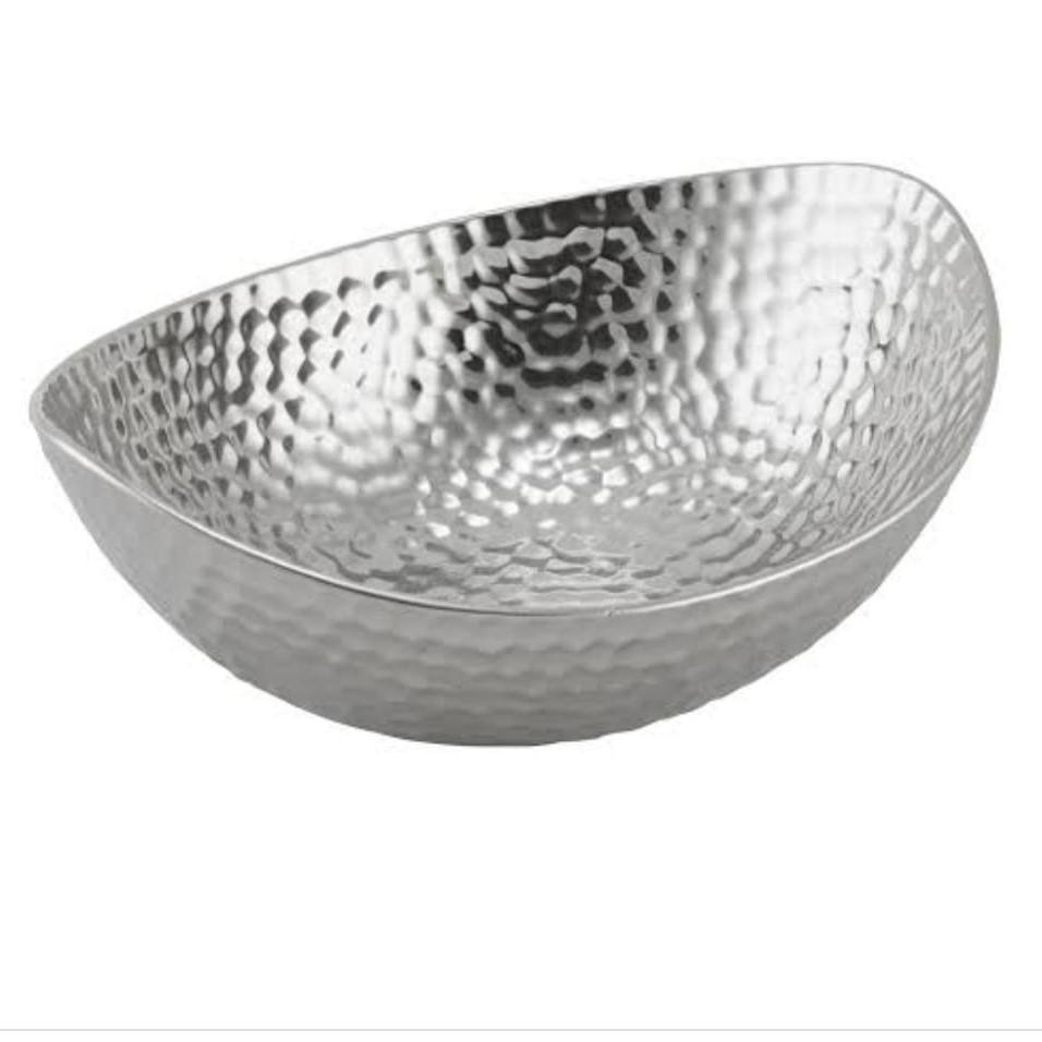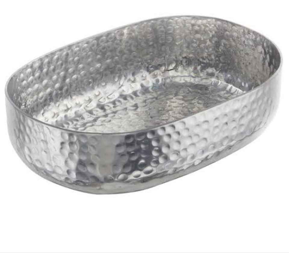 ชามเสิร์ฟโลหะขัดเงาทำด้วยมือชามอลูมิเนียมสีเงินแบบตอกบนโต๊ะเครื่องครัวสำหรับตกแต่งภาชนะใส่ผลไม้และข้าว