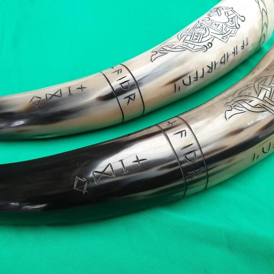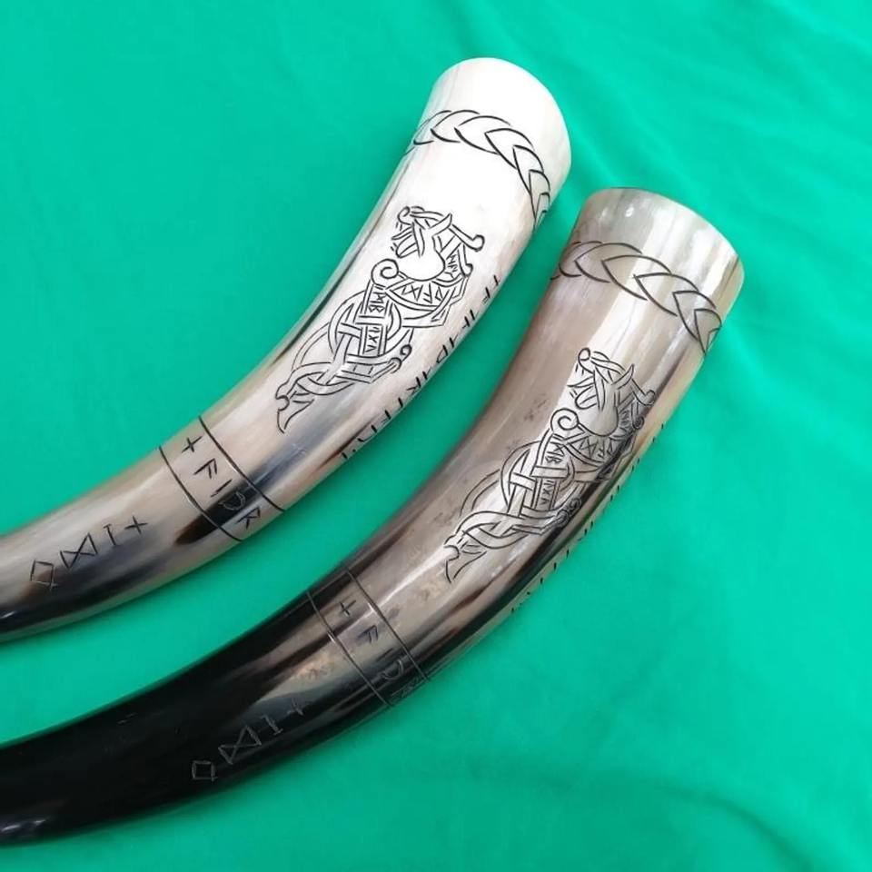 ฮอร์นไวกิ้งฮอร์นดื่มยุคกลางทำด้วยมือขัดธรรมชาติคุณภาพดีที่สุด