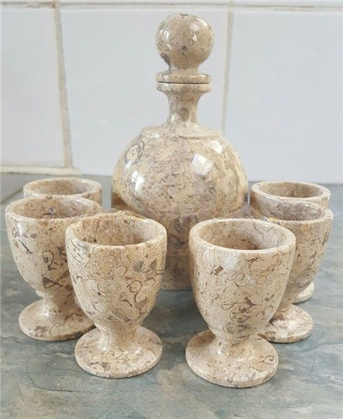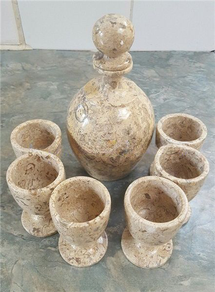ชุดขวดไวน์หินอ่อนออนิกซ์ขัดเงาทำมือ แก้วน้ำ แก้วไวน์หินอ่อนออนิกซ์ขัดเงา