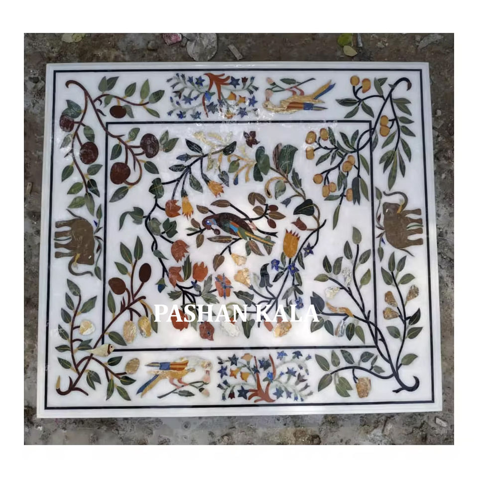 โต๊ะทรงสี่เหลี่ยมฝังหินอ่อนสีขาวสวยงาม งานฝีมือสไตล์ยอดนิยมเรียบง่าย ผลิตจากหินอ่อน สามารถปรับขนาดได้ตามต้องการ