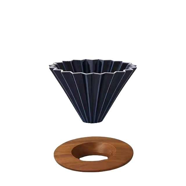 ที่ดริปกาแฟโอริกามิเซรามิกพร้อมที่ใส่ไม้ทำด้วยมือ