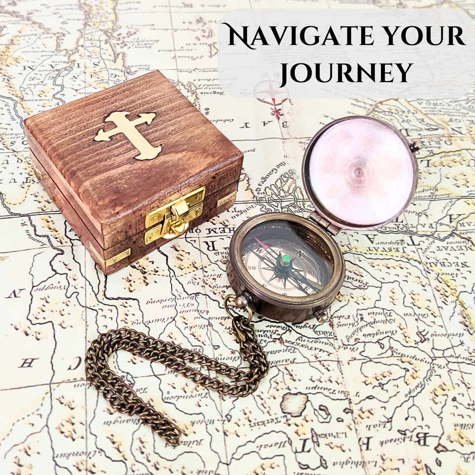 เข็มทิศแม่เหล็กทำจากทองเหลืองคุณภาพเยี่ยมทำด้วยมือกล่องไม้โบราณขัดเงาดูเหมาะสำหรับปีนเขา