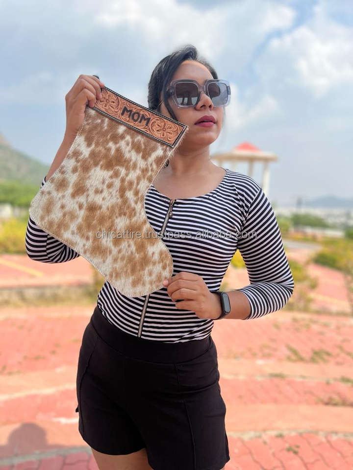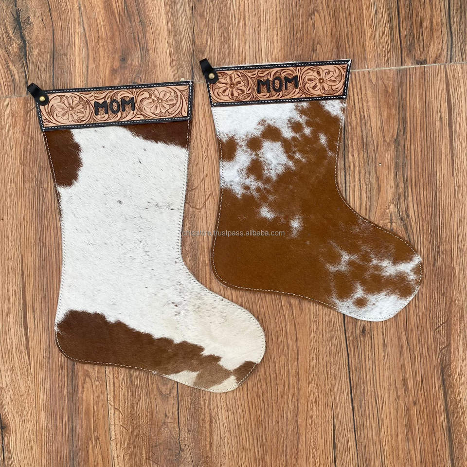 ถุงน่องหนังวัวสไตล์ตะวันตกสำหรับวันหยุดคริสต์มาสทำมือแบบพรีเมี่ยม