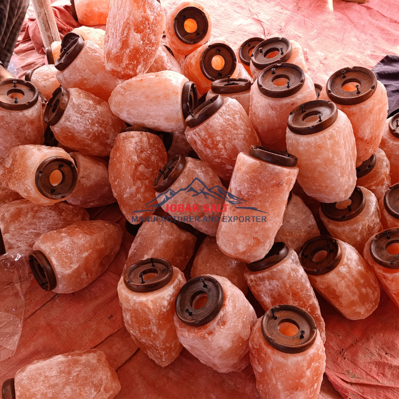โคมไฟหินเกลือหิมาลัยแบบพรีเมี่ยมทำด้วยมือขาตั้งไม้แบบชนบทเป็นมิตรกับสิ่งแวดล้อมแกะสลักฮวงจุ้ยสไตล์รักทำด้วยมือ
