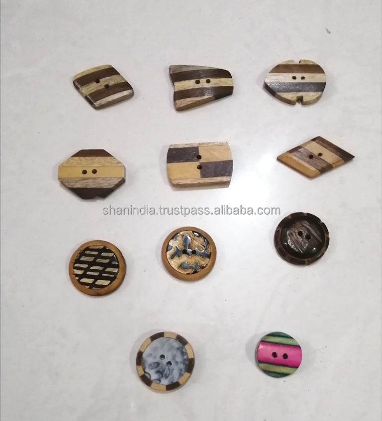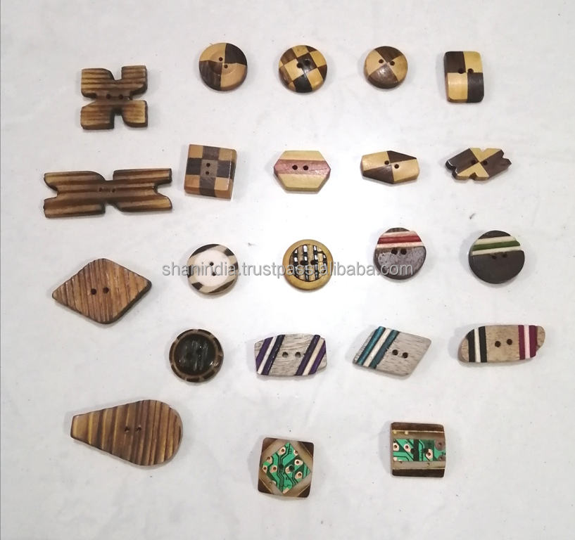 กระดุมไม้รูปเขากระดูกทำด้วยมือพร้อมลูกปัดตกแต่งปรับแต่งได้สำหรับเสื้อผ้าแฟชั่น