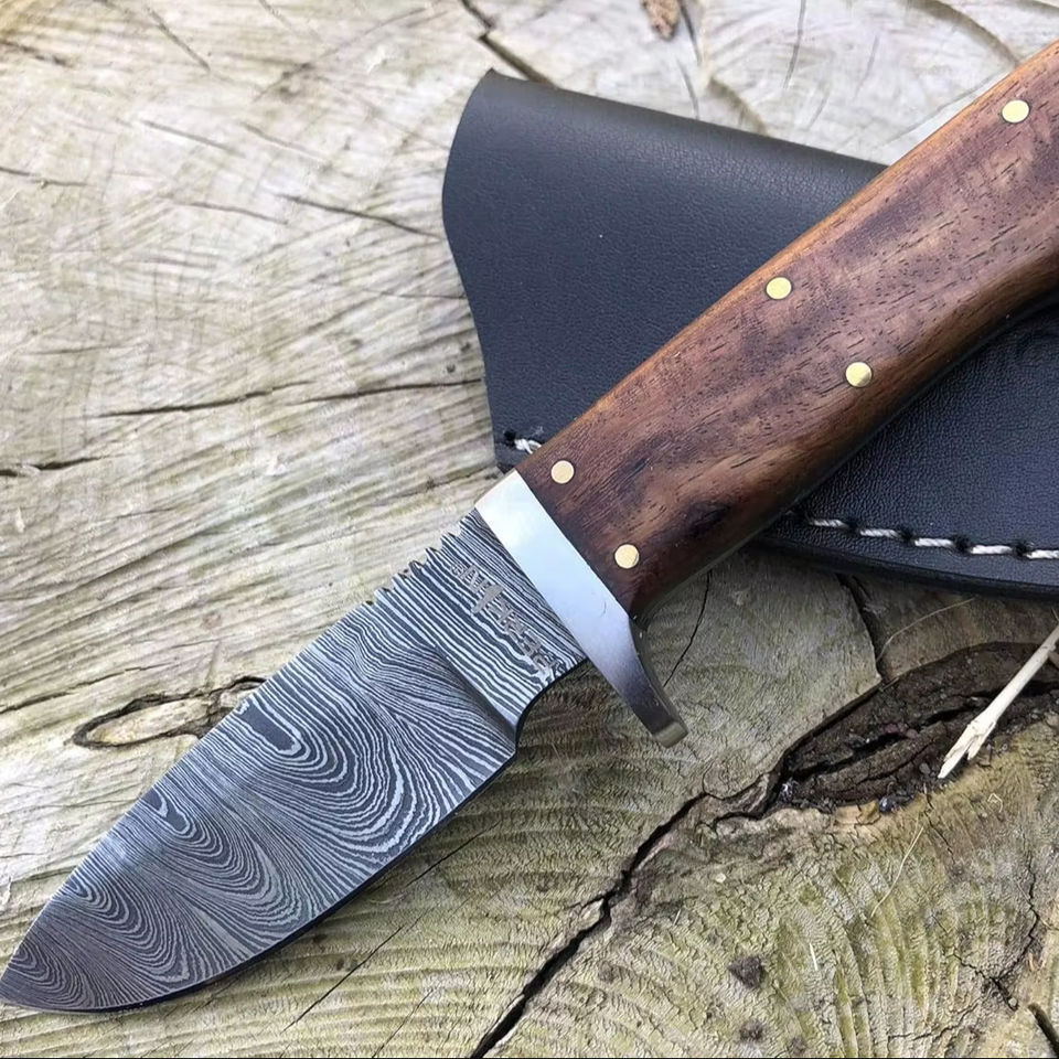 มีดแล่หนังกลางแจ้งเหล็กดามัสกัสคุณภาพพรีเมียมเกรดอุตสาหกรรม ผลิตด้วยมือ พร้อมปลอกหนัง รองรับ OEM รับประกัน 3 ปี