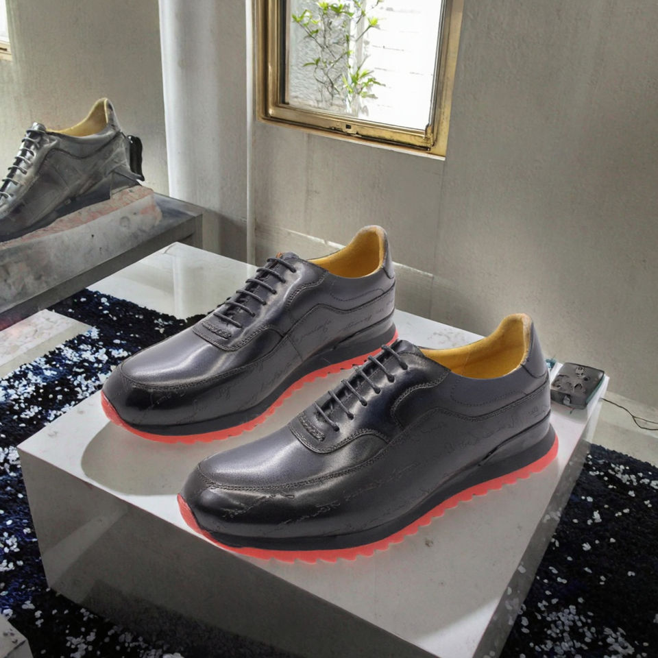 Handmade Premium Quality Leather Sports Casual Men's Sneakers Customized Lace Laser Print Comfortable Walking Shoes for Spring