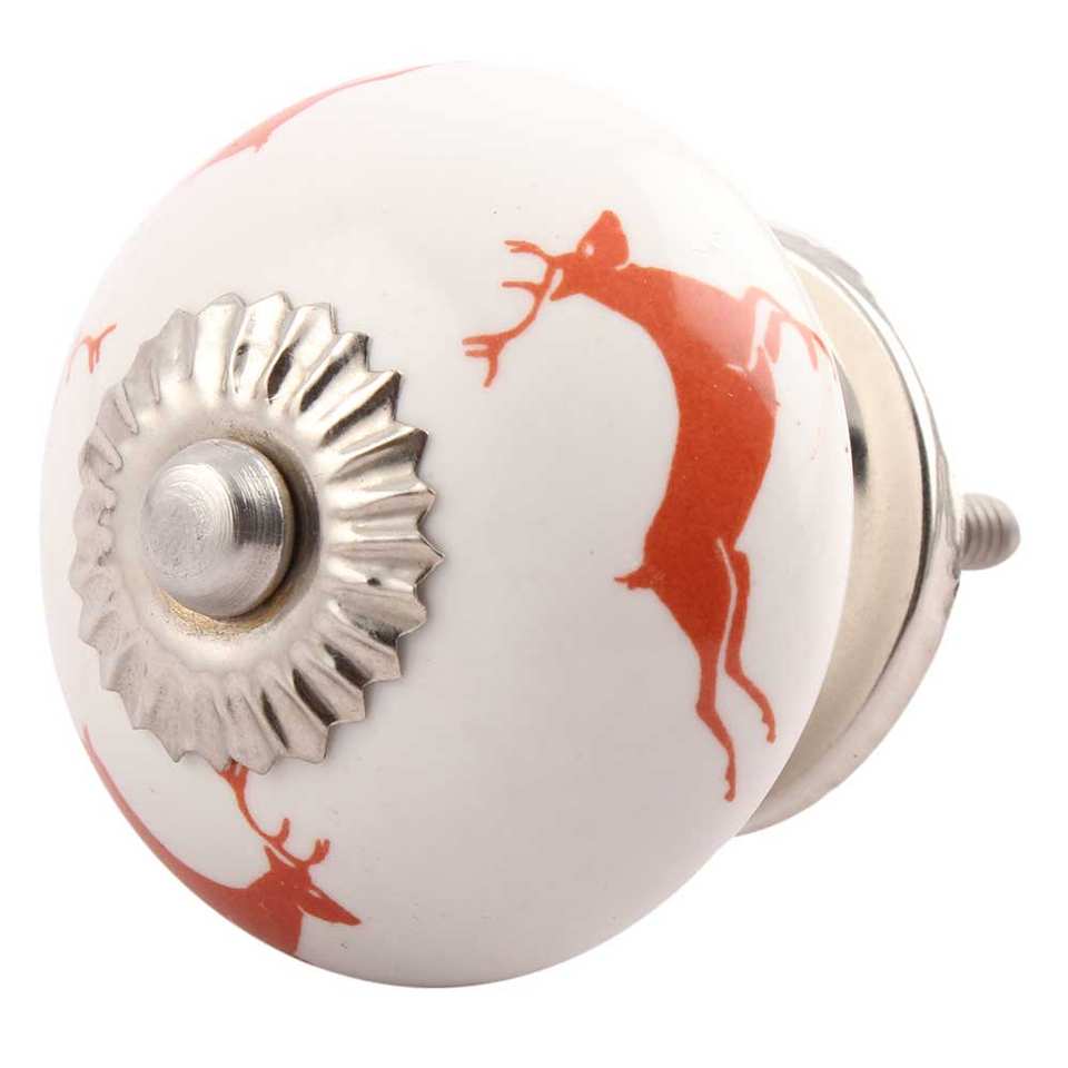 ลูกบิดลิ้นชักเซรามิกสีแดงรูปกวางเรนเดียร์ทำมือขายส่ง สำหรับเด็ก ใช้เป็นมือจับตู้ครัว ตู้เสื้อผ้า ประตูตู้ สั่งซื้อจำนวนมาก